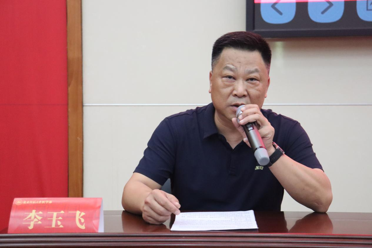 16日下午,进行实习前教育开班仪式,李玉飞表示高度重视并支持临床后期教学,强调了临床见习实习对于医学生的重要性,希望同学们能够尽快适应教学医院新环境,同时遵守学校及属地医院各项规章制度,不断提高专业技能的掌握水平。