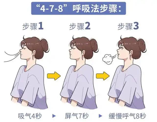 吸气4秒→屏息7秒→呼气8秒(重复5次),快速激活副交感神经,缓解胃痉挛【1】