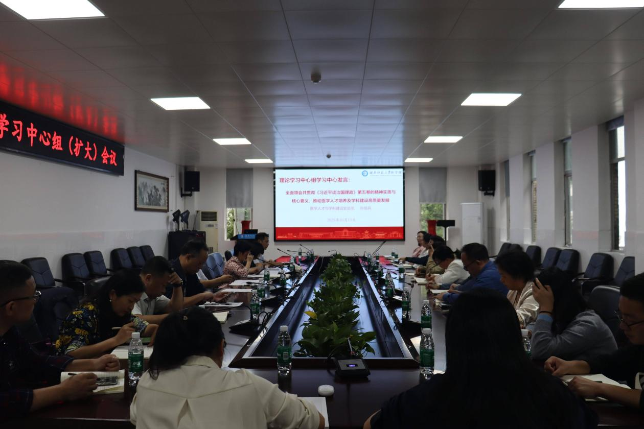 10月13日下午,医学部党工委在仁医楼207会议室召开理论学习中心组(扩大)会议,专题学习《习近平谈治国理政》第五卷和习近平总书记关于全面深化改革的一系列新思想、新观点、新论断,并部署相关工作。医学部党工委书记、主任祝益民主持会议。