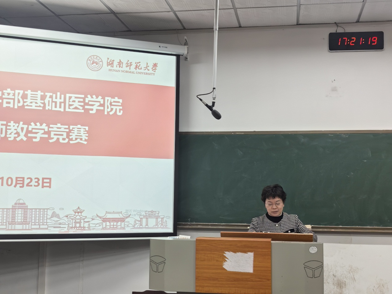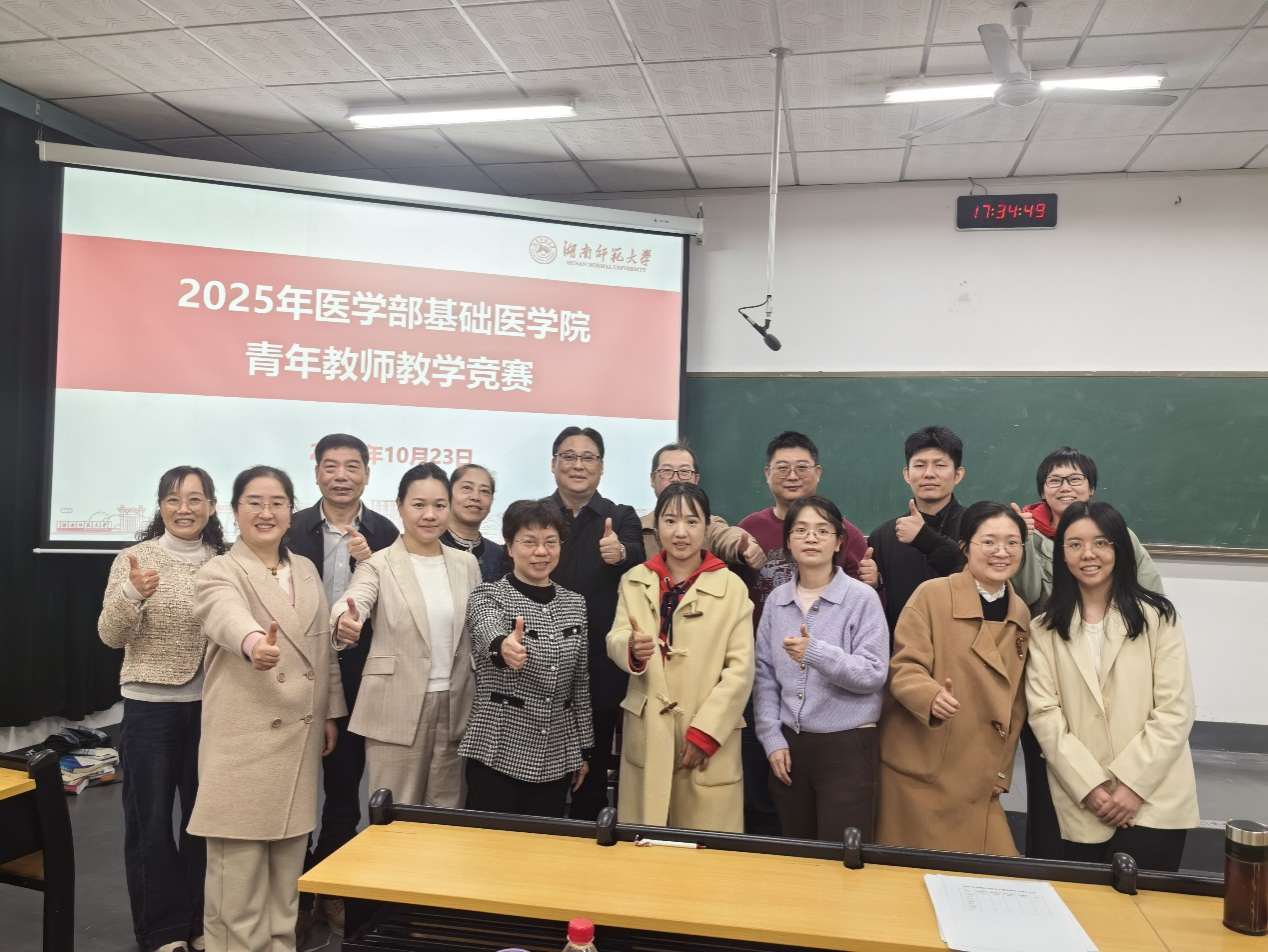 根据湖南师范大学教师教学发展中心教发字〔2025〕16号文件精神及医学部关于举办第25届湖南师范大学(医学)青年教师教学竞赛的工作安排,为深入落实立德树人根本任务,推动青年教师专业成长,深化课堂教学改革,服务学校一流本科建设,全面提升人才培养质量,10月23日下午,基础医学院在勤医楼四教室成功举办全院青年教师课堂教学竞赛。