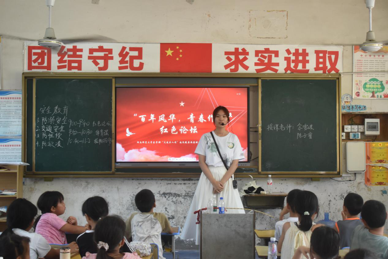 7月16日上午,医学部“天使在人间”暑期实践团于沅陵县麻溪铺九校开展红色论坛活动。团队成员佘雪琪、陈子睿担任主讲人。
